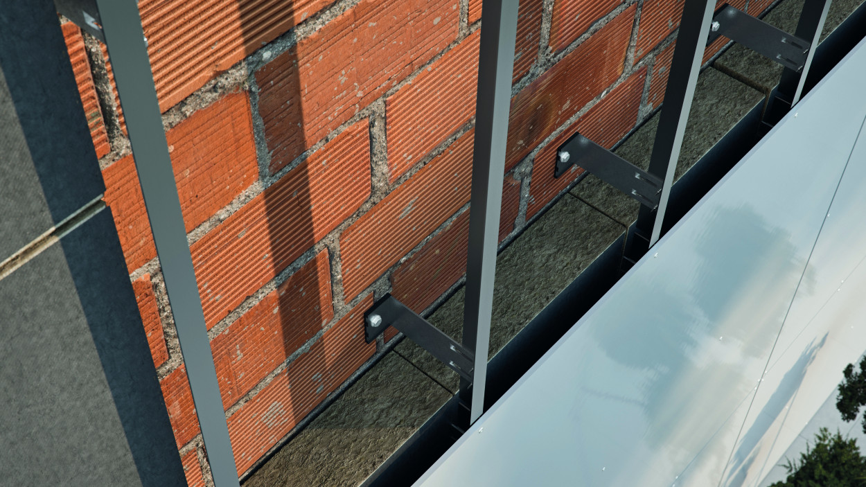 Die RENOVENT-Unterkonstruktion für eine belüftete Fassade besteht je nach Konfiguration aus den folgenden Elementen: